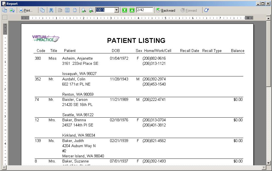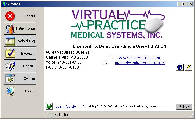 Click on the screenshots below to see some (not all) of the VirtualPractice screens.