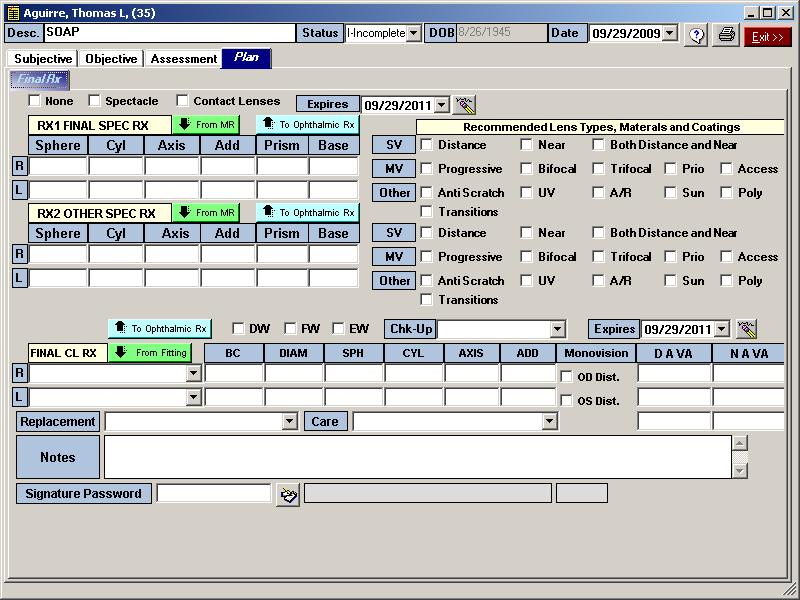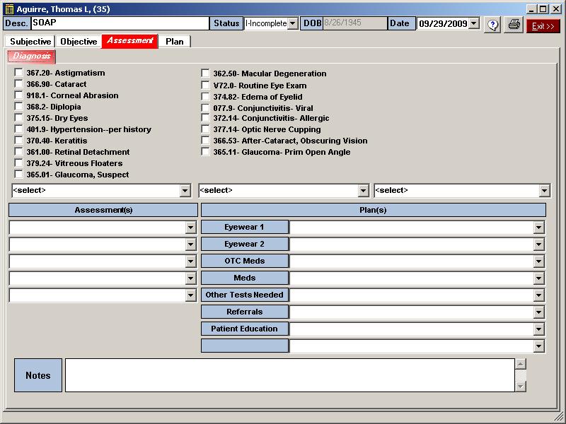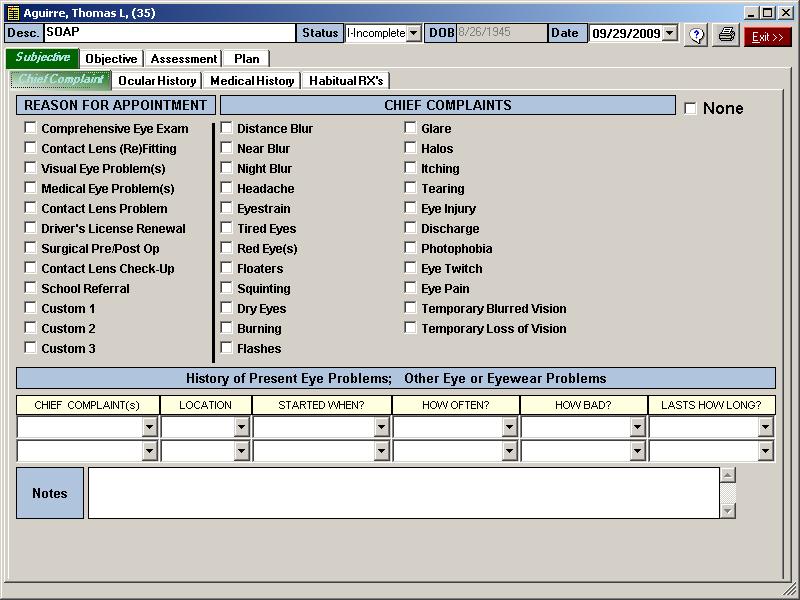 Ophthalmic SOAP EMR